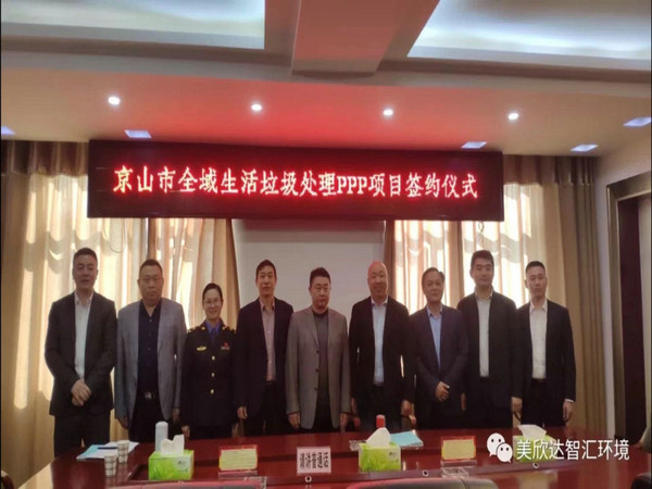 11月15日,京山市与美欣达集团在京山市城市管理局举行垃圾处理PPP项目签约仪式,京山市常委王双进、京山市城市管理执法局局长王波、工会主席周四枝 、京山市京诚投资开发有限公司杨伟华 ,美欣达智汇环境产业总经理赵建祥,副总经理钱轶超等相关领导出席签约仪式。签约仪式由京山市常委王双进主持。