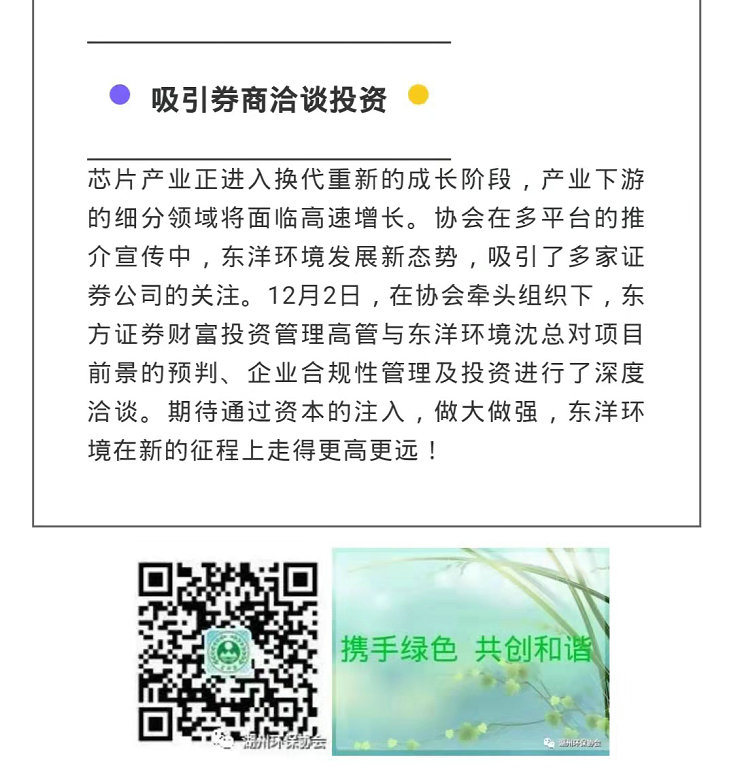 会员动态丨东洋环境发展新态势,吸引券商洽谈投资