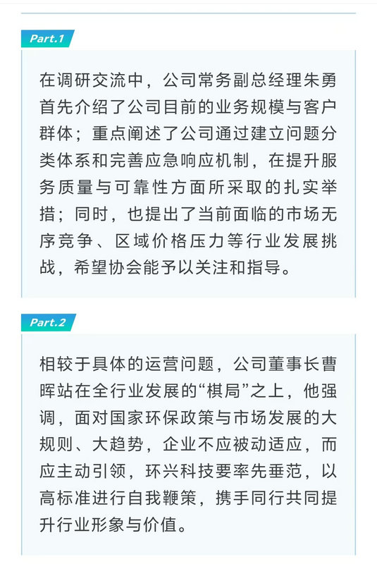 协会动态丨为发展把脉!协会领导与环兴科技共绘发展新思路!