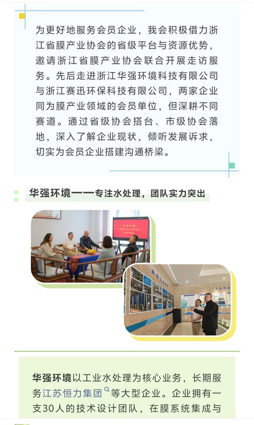 服务会员,借力而上丨我会邀请省膜产业协会走访华强环境、赛迅环保